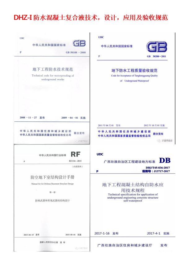 DHZ-I混凝土復合液(納米結(jié)晶自密實劑),是目前國內(nèi)僅有的一種多功能高性能混凝土結(jié)構(gòu)自防水材料。采用DHZ-I混凝土復合液(納米結(jié)晶自密實劑)更切合住建部新出臺的地下室防水不低于結(jié)構(gòu)設計工作年限50年的要求,同時大幅度節(jié)省地下工程防水投資成本50%左右,節(jié)省施工工期30%以上,也免除地下工程后期滲漏水維修成本,用戶可高枕無憂。產(chǎn)品為無毒液體,不污染環(huán)境,對人體無害,屬于綠色建材建筑產(chǎn)品,產(chǎn)品獲得國家發(fā)明專利,多次榮獲國內(nèi)外發(fā)明大獎。