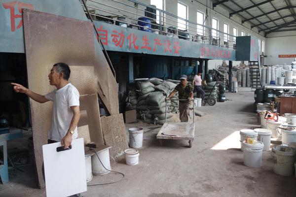 飾壁涂料生產(chǎn)車間加班生產(chǎn),確保按時交貨