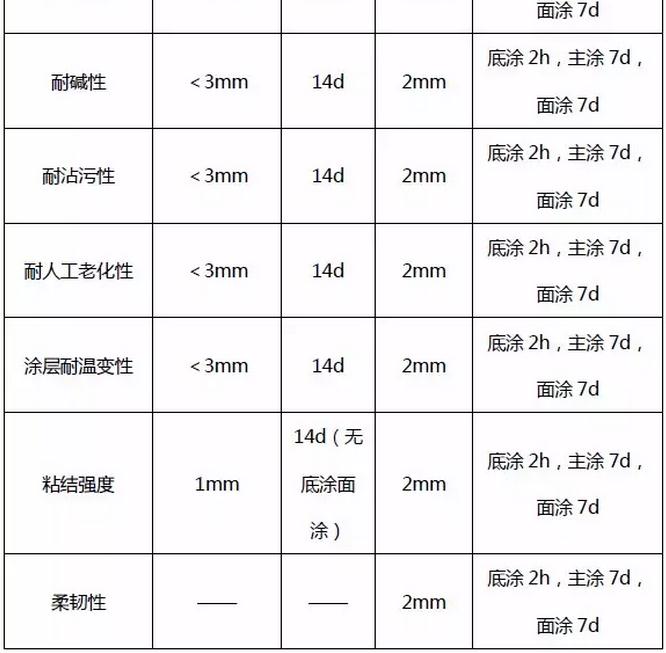 5、增加主涂吸水量、涂層體系柔韌性、凍融循環(huán)粘結(jié)強度項目;