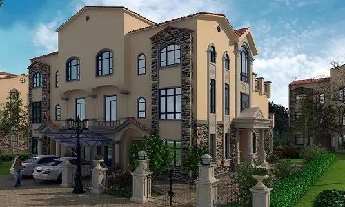 棕紅色為整套別墅的主色調(diào),因此這套別墅的顏色基調(diào)偏亮,藍(lán)色的屋頂、白色的羅馬柱,最后三層閣樓處淺黃色的外墻中和了整個(gè)顏色的基調(diào)。色彩搭配剛剛好,典雅高貴盡顯其中。