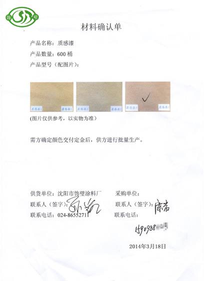 沈陽質(zhì)感漆采購確認(rèn)單,樣板免費送!