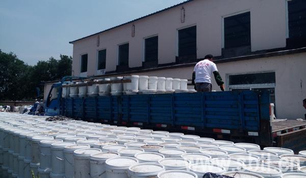 涂料發(fā)貨天天有,十二噸顆粒質(zhì)感漆目的地長(zhǎng)春
