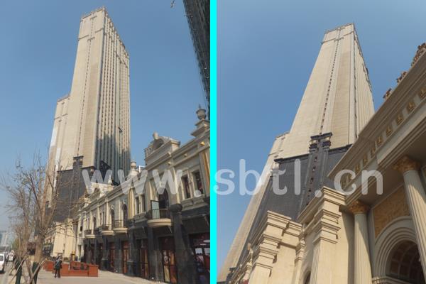 位于沈陽渾南新區(qū)的萬達(dá)公館,秉承了萬達(dá)以城市中心為發(fā)展的理念;樓盤緊鄰沈陽地鐵二號(hào)線營盤街站出口,交通便利,是渾南新區(qū)的地標(biāo)性建筑;采用巖片真石漆作為外墻裝飾的主材,而巖片真石漆的造價(jià)要比普通的沙面真石漆高出很多,但仿天然花崗巖的效果非常好;應(yīng)用巖片真石漆即減少了天然花崗巖大量開采后對(duì)環(huán)境破壞,又可以達(dá)到外墻裝飾與保護(hù)的效果。