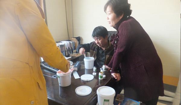 飾璧涂料工程師指導(dǎo)朝鮮客戶調(diào)色