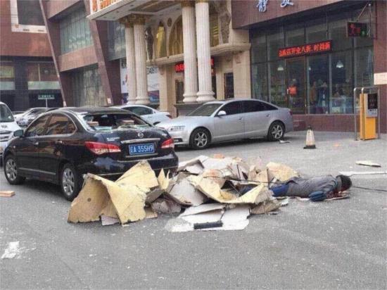 昨日,沈陽大風(fēng),南站一酒店墻皮被風(fēng)吹落砸傷兩位行人,所幸暫無生命為危險(xiǎn)。