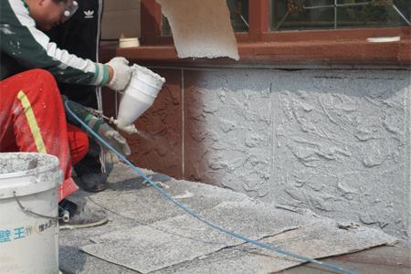方形柱棱角分明,很容易因噴涂不勻而使棱角模糊,為了噴涂方便,以約50cm的距離噴涂棱角,遠(yuǎn)距離噴涂,霧花散得開,面積大而均勻,如果距離太近,稍不注意就會噴厚,噴不均勻,使棱角線條顯現(xiàn)不出來,失去了原有建筑的整體外觀美感。